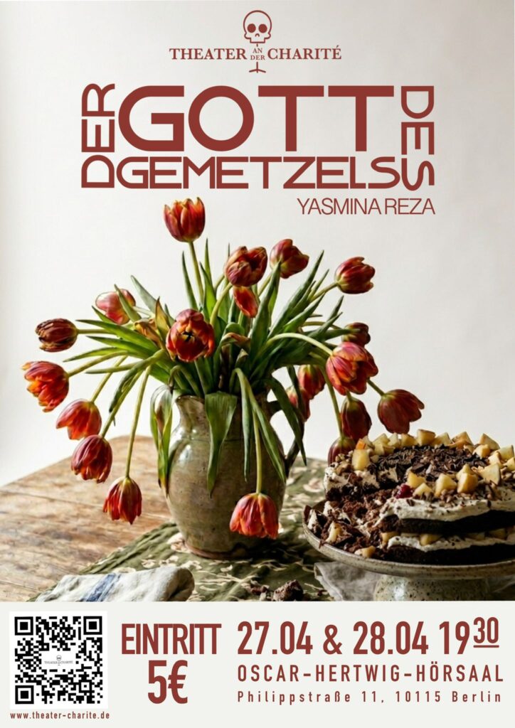 Erlebt die erfrischende Komödie von Yasmina Reza hautnah im Oskar-Hertwig-Hörsaal am 27. und 28. April um 19:30 Uhr! Tickets gibt es ab sofort im Vorverkauf!
